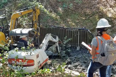 After October's heavy rains FOC board member Brian Waters alerted EBMUD to the fact that the opening in the SP201 dam on San Pablo Creek near Bear Creek Rd was yet again blocked with debris. Brian received the WIlliam Penn Mott Jr Environmental Award in 2017 for his diligence in making sure this opening was kept clear, allowing for trout passage for the first time in many years.