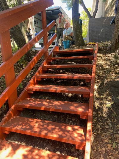 Thanks to prospective Eagle Scout Romir Ahuja of San Ramon’s Troop 888, we have a new set of stairs leading to our creekside trail at its southern terminus near Chevron. Romir built the steps in his driveway, trucked them up to behind Chevron, and then he and his crew installed them on 8/31, with help from FOC's Tomas MacKinnon and Bruce McGurk.